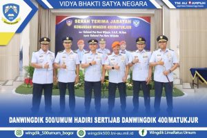 Komandan Wingdik 500/Umum Kolonel Pnb Didik Setiya Nugroho, S.E., M.Han., didampingi Ny. Stella Didik S.N., menghadiri Sertijab Danwingdik 400/Matukjur yang dipimpin Danpusdik Kodiklatau Marsma TNI Sapuan, S.Sos., CHRMP., di Bandung, Rabu (8/4/2026). Kegiatan ini menjadi momentum penting dalam kesinambungan kepemimpinan dan pembinaan organisasi.