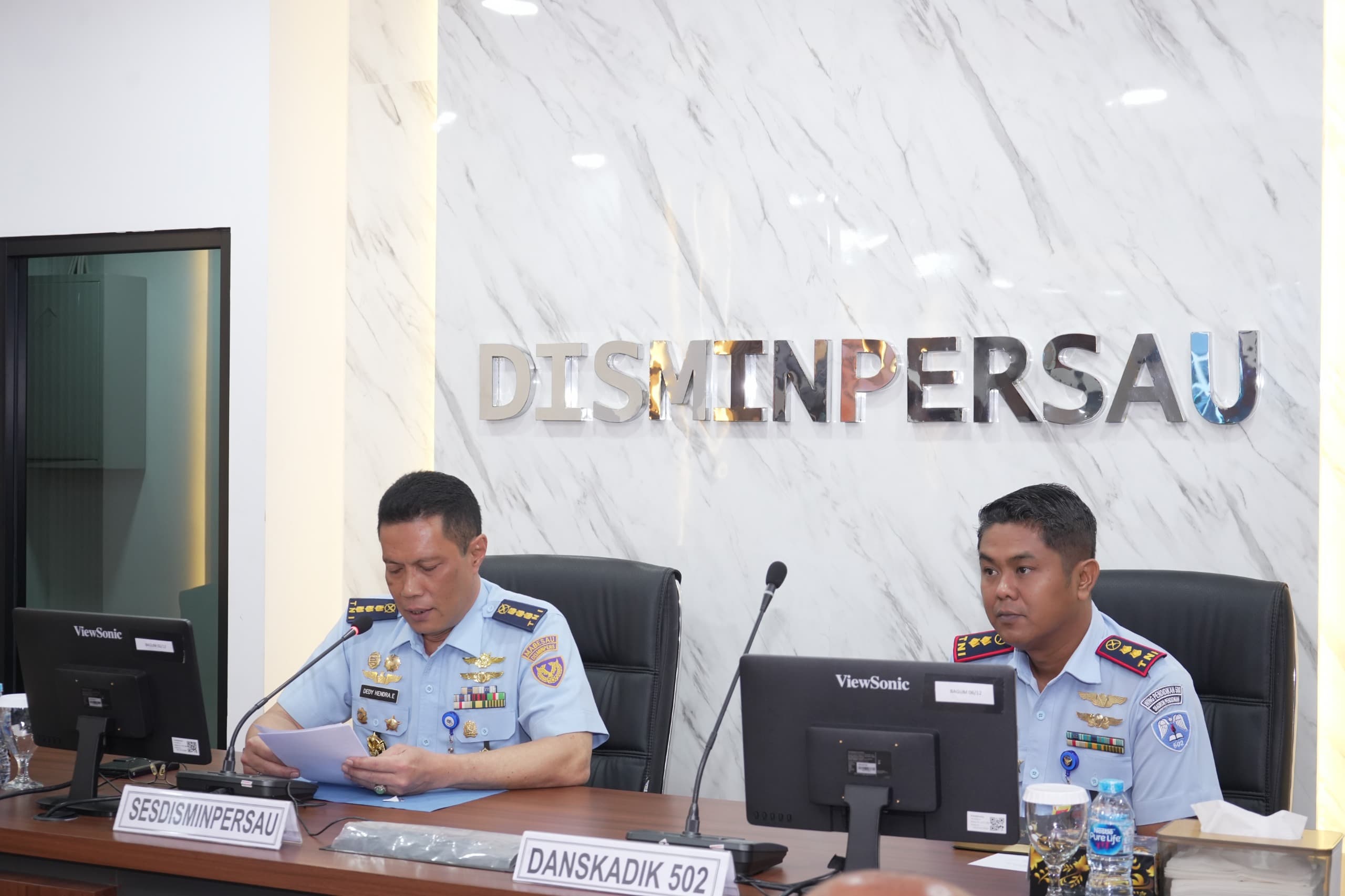 Komandan Skadik 502 Wing Pendidikan 500/Umum, Letkol Adm Andik F. Andono, M.M., mendampingi Perwira Siswa Sesarcab Administrasi (Sesarcab Adm) A-47 melaksanakan kunjungan studi banding ke Dinas Administrasi dan Personel Angkatan Udara (Disminpersau) Mabesau, Senin (9/2).